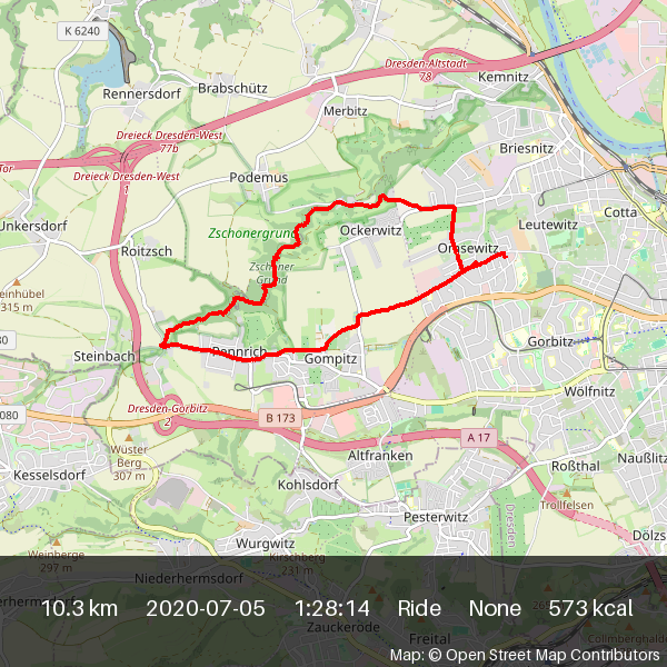 | 2020-09-09 17:40 | 22.8 | 1:17:02 | None | Ride |