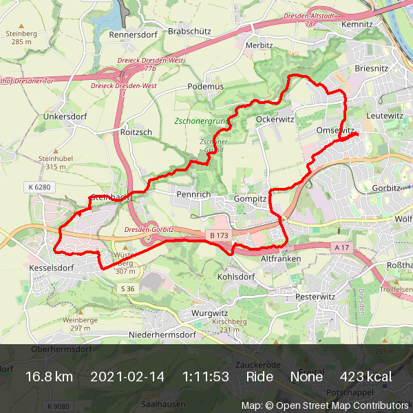 | 2022-12-07 18:28 | 5.3 | 0:32:01 | Stadtrad | Ride |