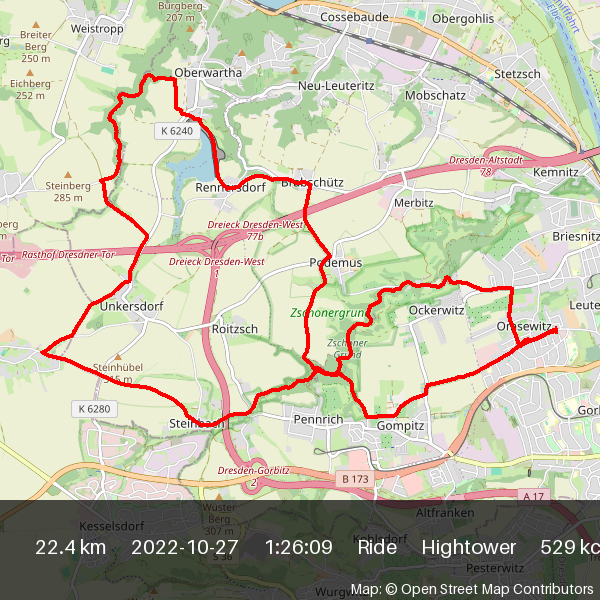 | 2022-10-29 18:55 | 22.0 | 1:35:33 | Hightower | Ride |