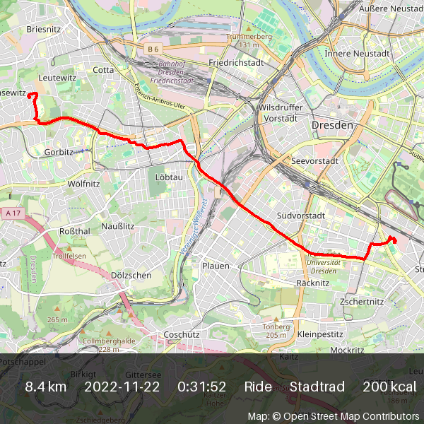 | 2022-11-23 16:53 | 8.5 | 0:32:54 | Stadtrad | Ride |