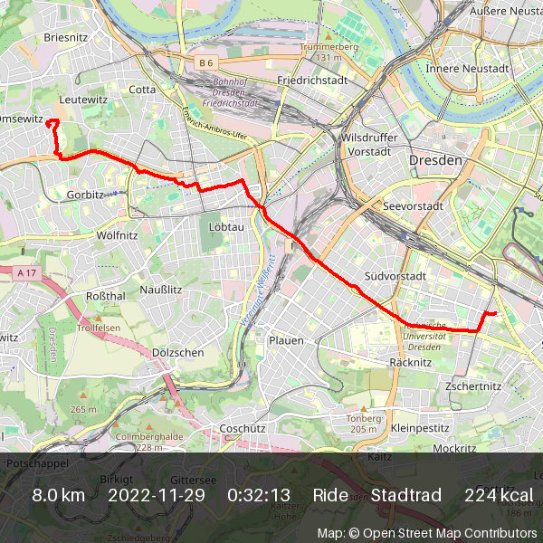 | 2022-11-15 17:01 | 8.2 | 0:27:42 | Stadtrad | Ride |