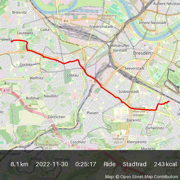 | 2022-11-17 07:21 | 7.9 | 0:27:25 | Stadtrad | Ride |
