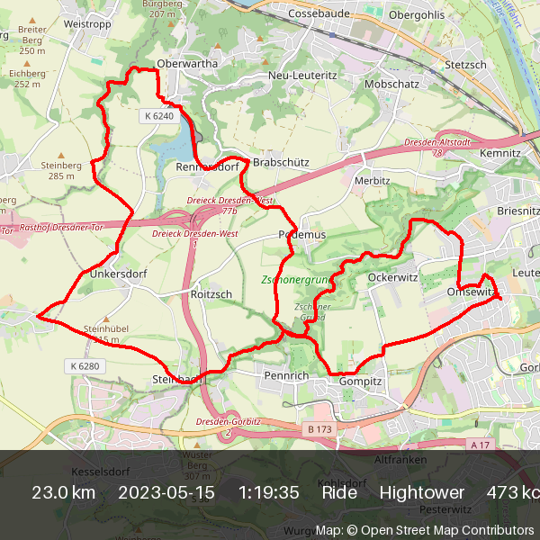 | 2023-05-08 16:41 | 24.6 | 1:28:49 | Hightower | Ride |