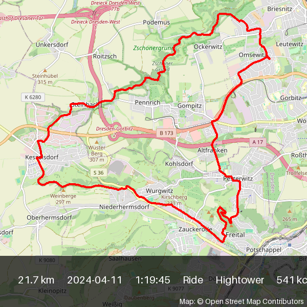| 2023-04-13 18:06 | 22.8 | 1:23:41 | Hightower | Ride |