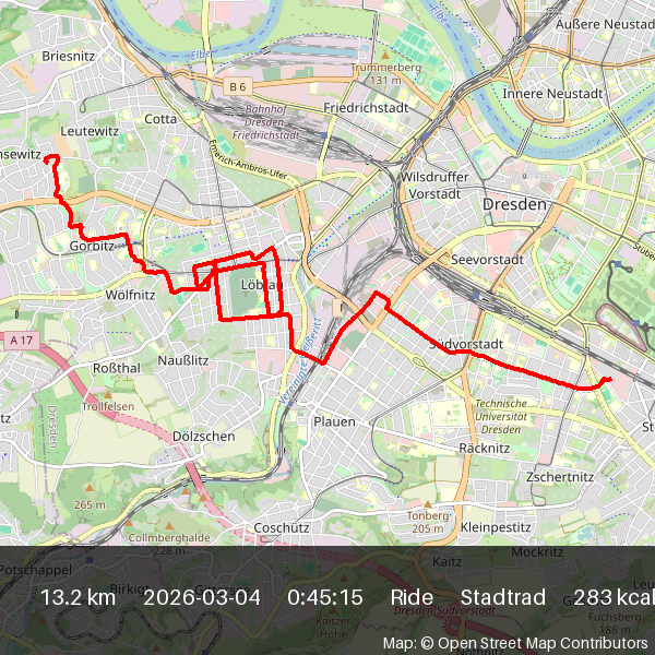 | 2026-03-18 17:07 | 9.3 | 0:44:06 | Stadtrad | Ride |