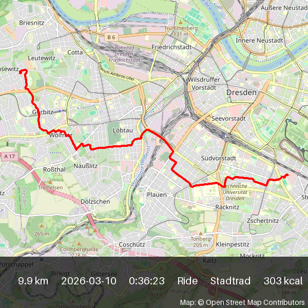 | 2026-03-04 16:50 | 13.2 | 0:45:15 | Stadtrad | Ride |