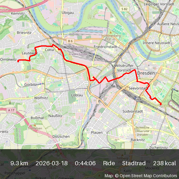 | 2026-03-04 16:50 | 13.2 | 0:45:15 | Stadtrad | Ride |
