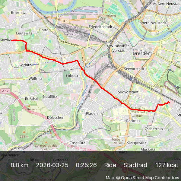 | 2026-03-18 07:01 | 8.2 | 0:26:13 | Stadtrad | Ride |