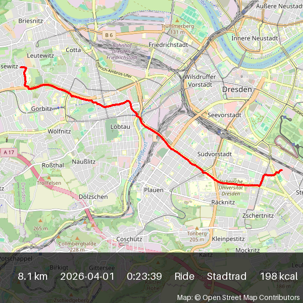 | 2026-04-01 17:02 | 8.4 | 0:30:04 | Stadtrad | Ride |