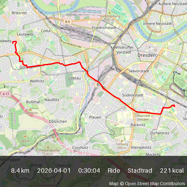| 2026-04-01 07:17 | 8.1 | 0:23:39 | Stadtrad | Ride |